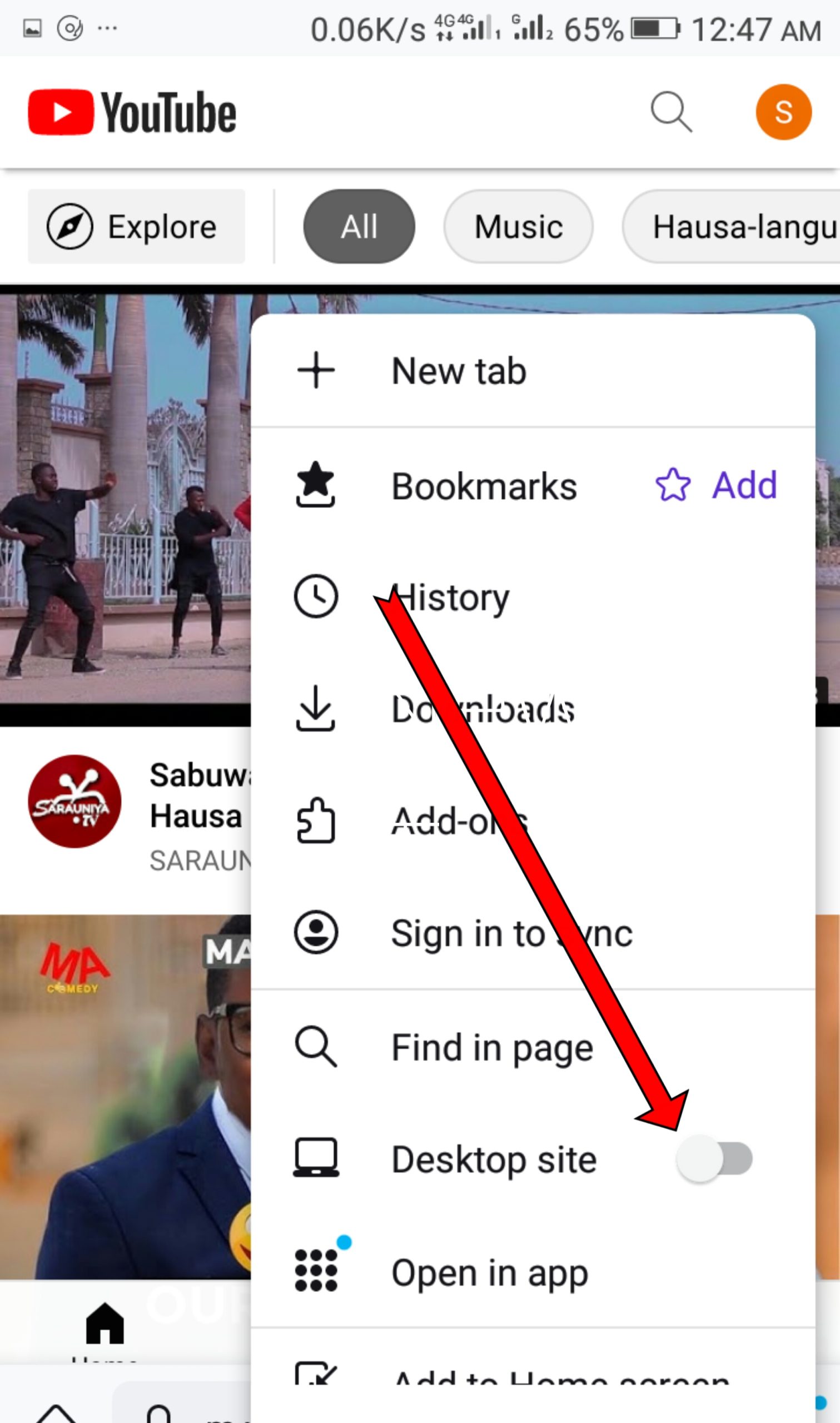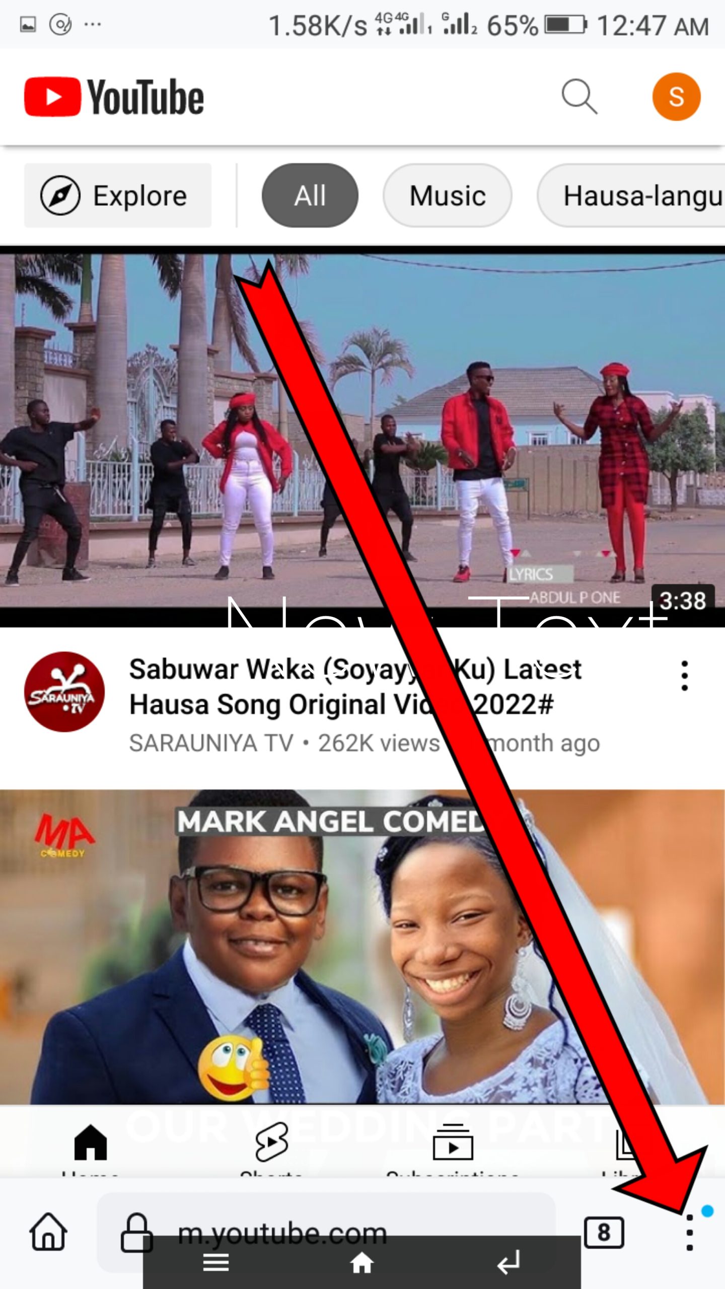 Da fari kana bukatar manhajar chrome domin yin wannan abu, idan ka mallaki manhajar chrome sai ka shiga cikin ta daga nan sai ka shiga shafin YouTube kamar haka 👉www.youtube.com👈 bayan ka shiga ya bude maka zaka ga wasu yan alamar digo-digo guda uku daga bangaren hannun ka na dama