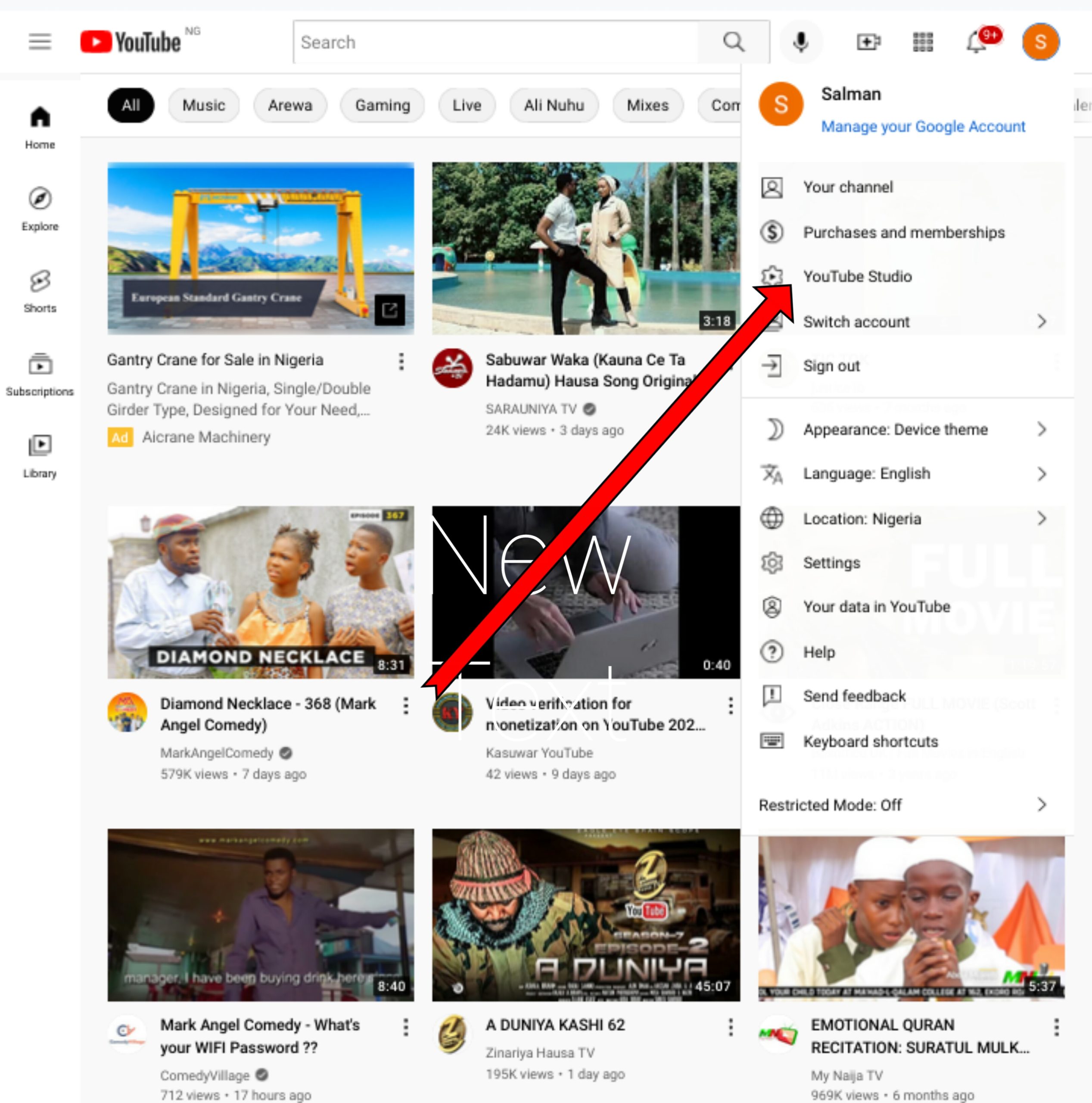 kana dannawa zai bude maka fuskar YouTube studio din sai kuma ka danna kan logon channel din ka dake bangaren hannun ka na dama.